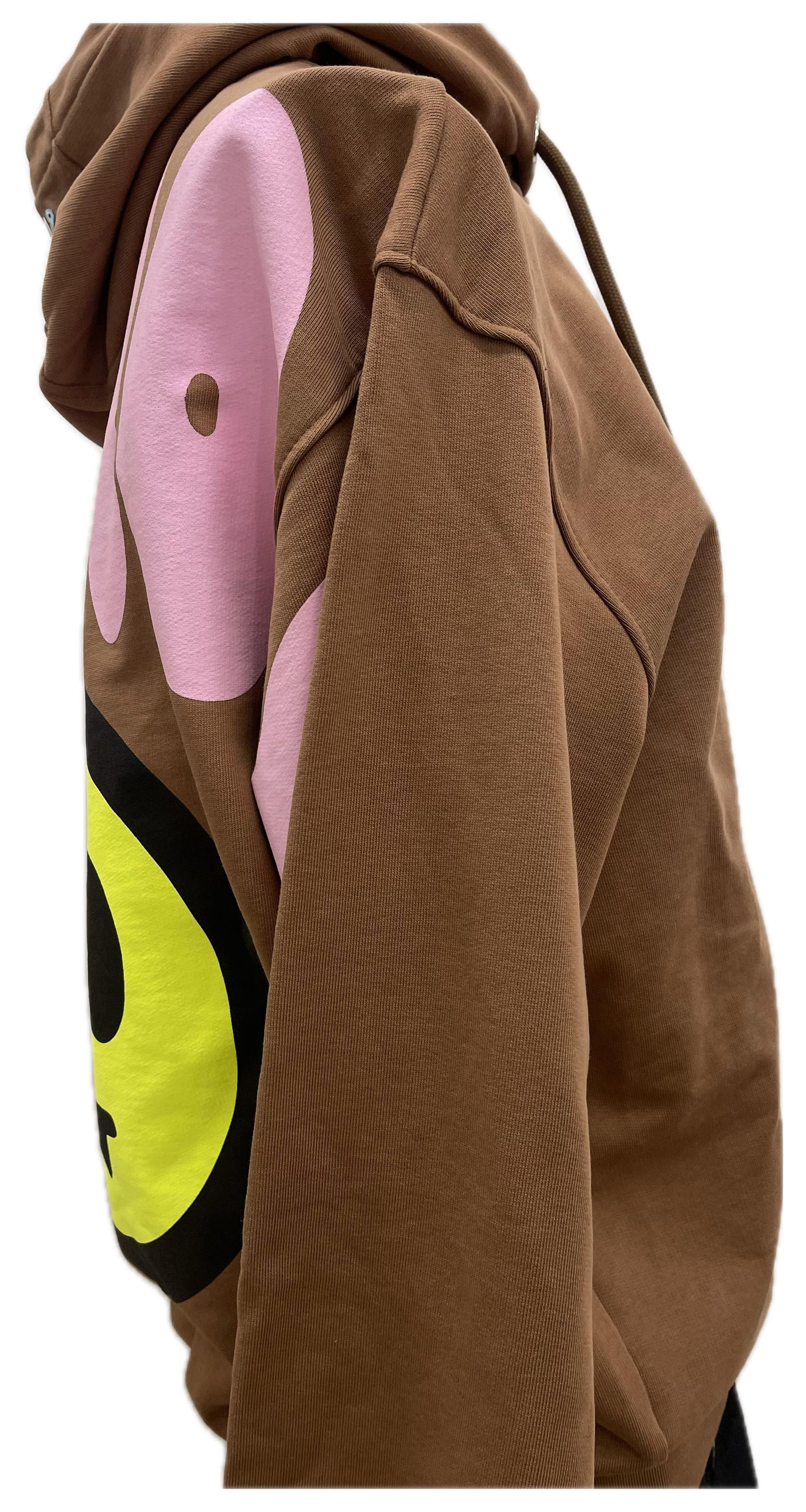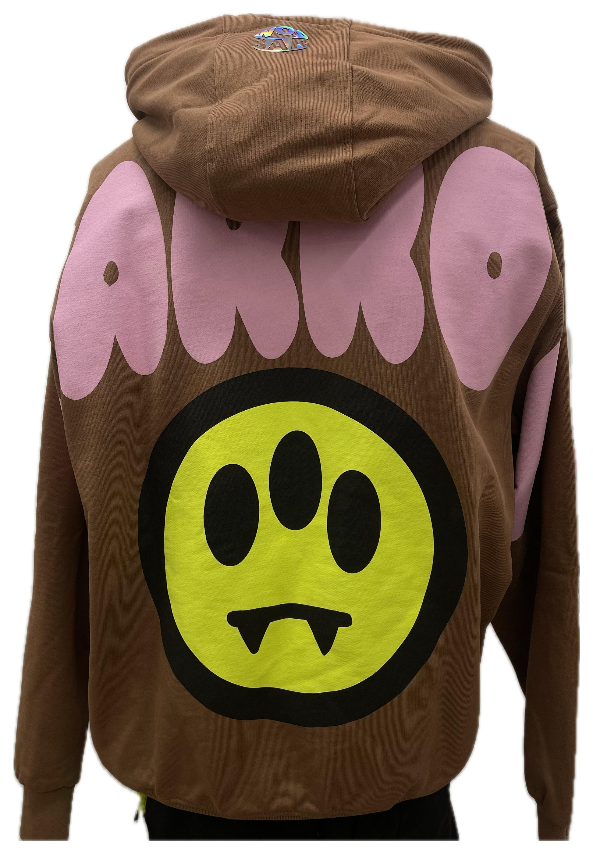 Hoodie color caramello con micro-logo Barrow sul petto e maxi grafica sul back: drip rosa + smiley giallo fluo. Morbida, comoda e d’impatto—perfetta per chi vuole un look urban riconoscibile.