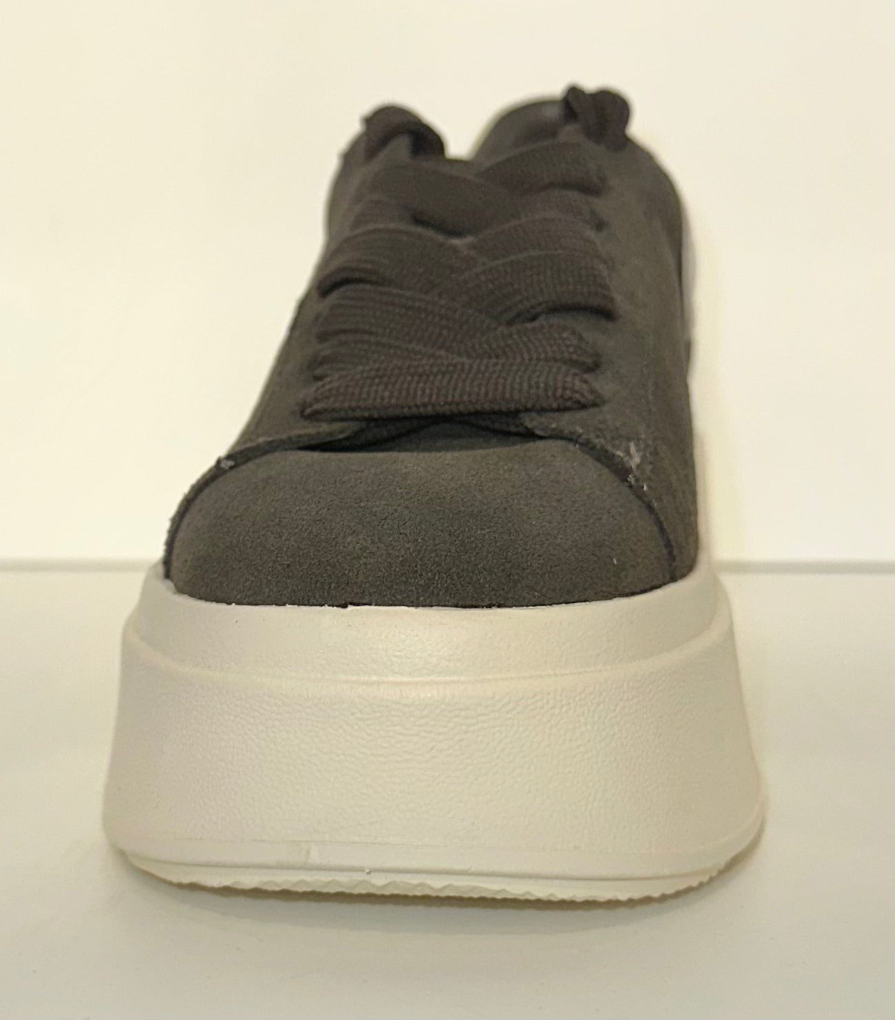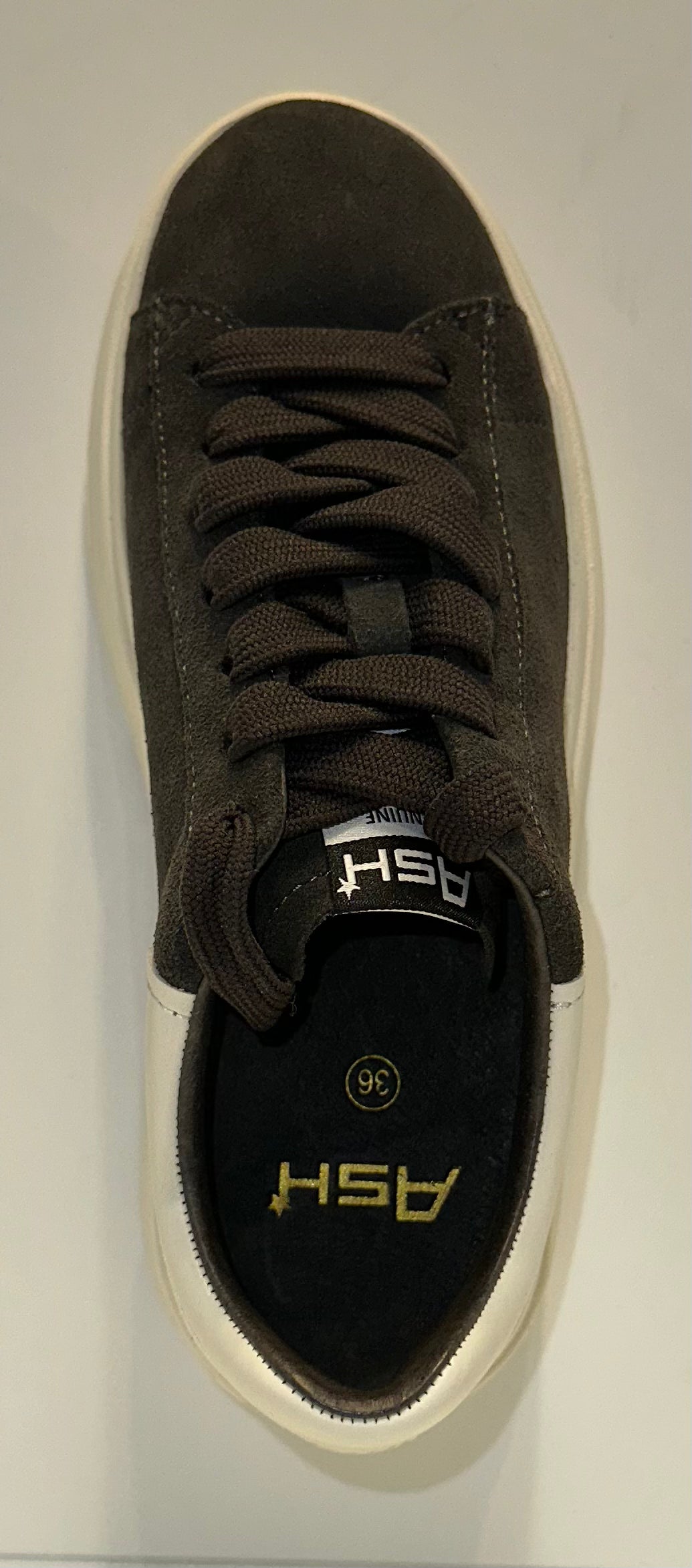 Il modello Moby è uno dei pilastri della collezione ASH, amato per il suo design essenziale ma di carattere. La combinazione cromatica Bistro/Gardenia offre un'alternativa raffinata al classico nero, rendendola facile da abbinare sia con toni neutri che con denim scuri.