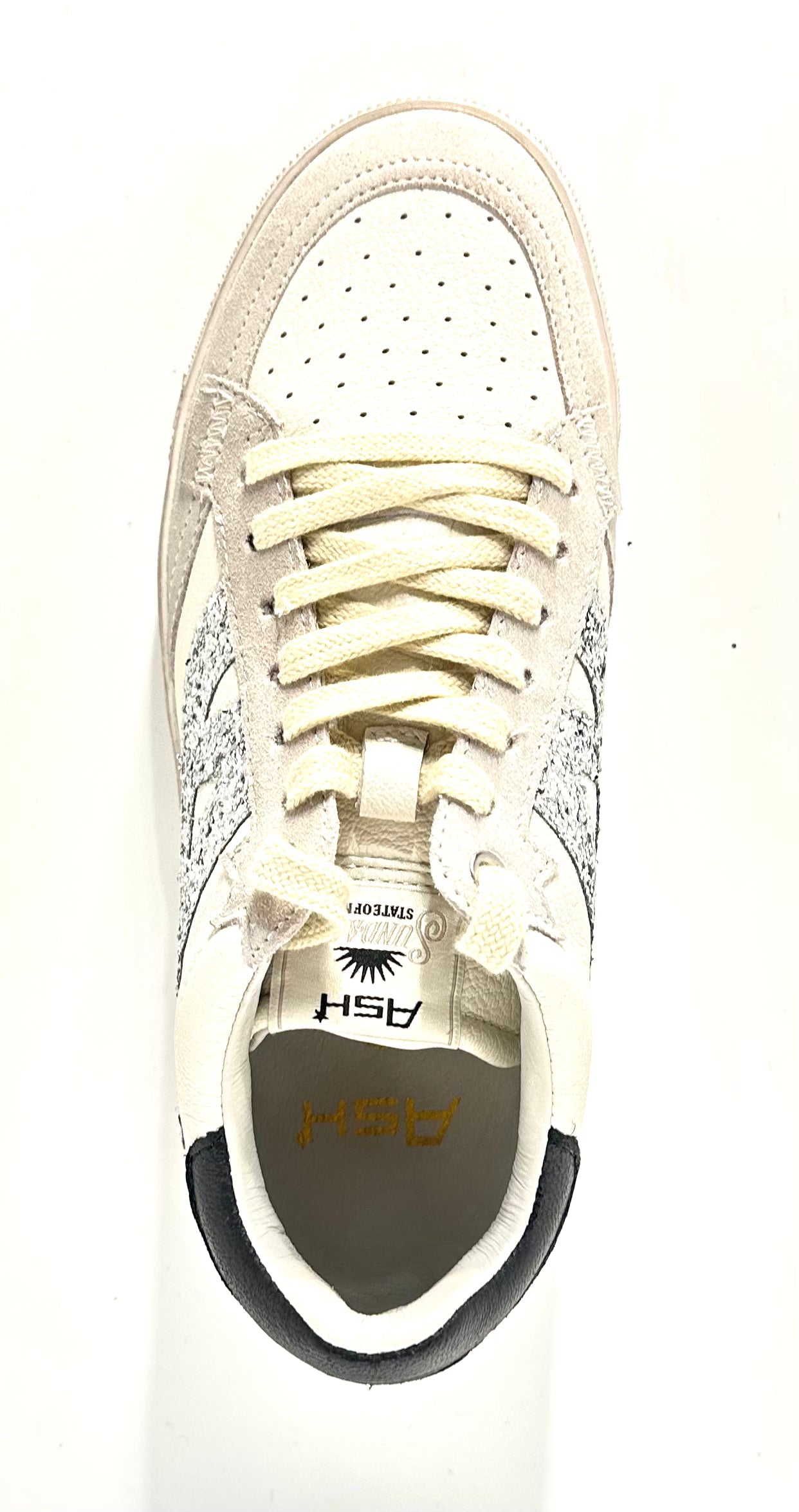 La Ash Moonlight è la sneaker pensata per chi vuole risplendere in ogni momento della giornata. Con la sua silhouette d’ispirazione skate-park e i suoi dettagli scintillanti, questo modello è una vera dichiarazione di stile, capace di unire il comfort di una scarpa quotidiana a un’estetica preziosa e audace.