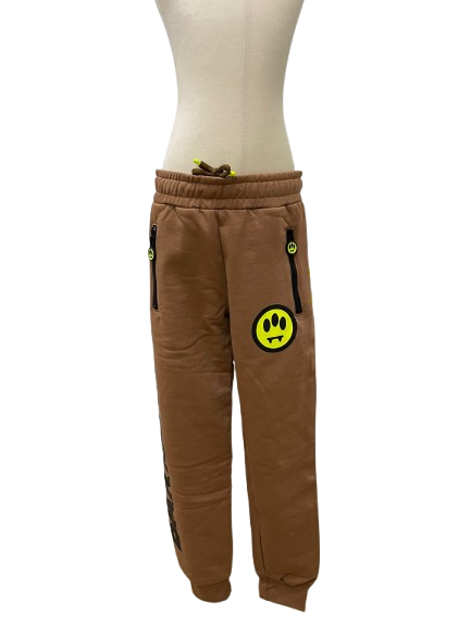 Barrow Bambino Joggers Marroni con Logo Fluo e Maxi Stampa Laterale
