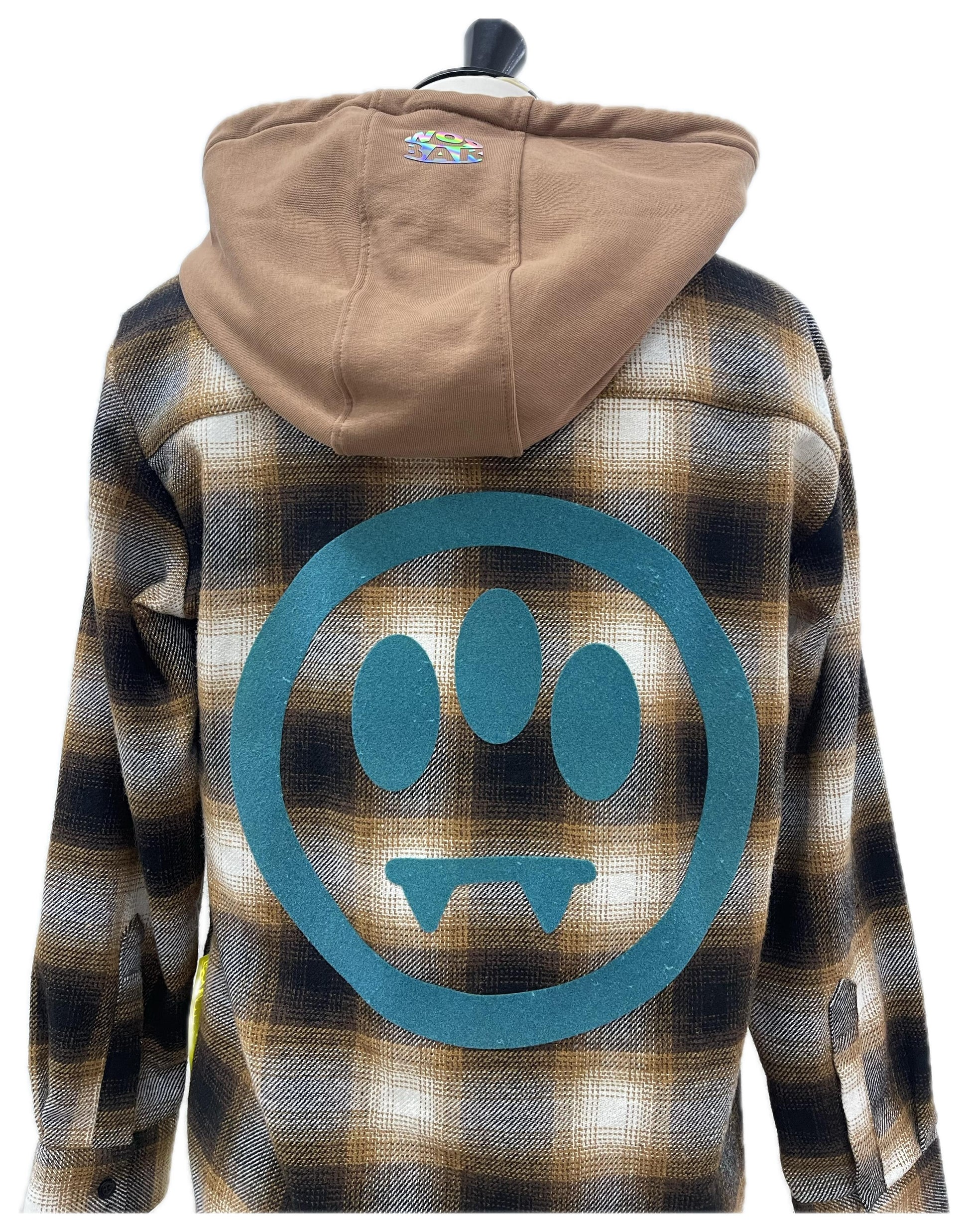 Camicia Barrow in flanella a quadri con cappuccio integrato e iconica stampa Smiley sul retro. Un capo dallo stile deciso e contemporaneo, ideale per chi ama unire comfort e personalità streetwear.