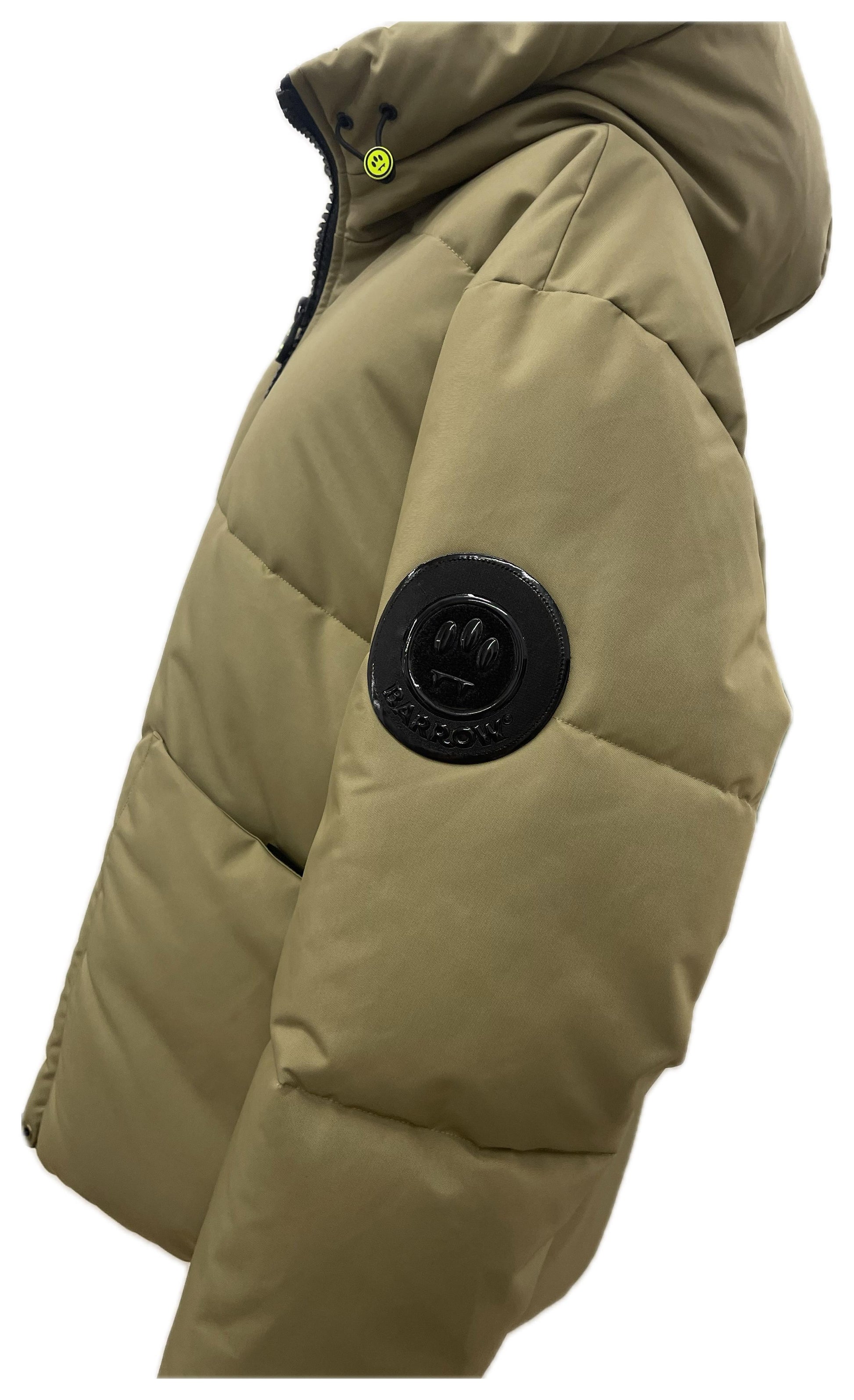 Dettagli logo: patch tondo Barrow sulla manica; nastri interni fluo logati.