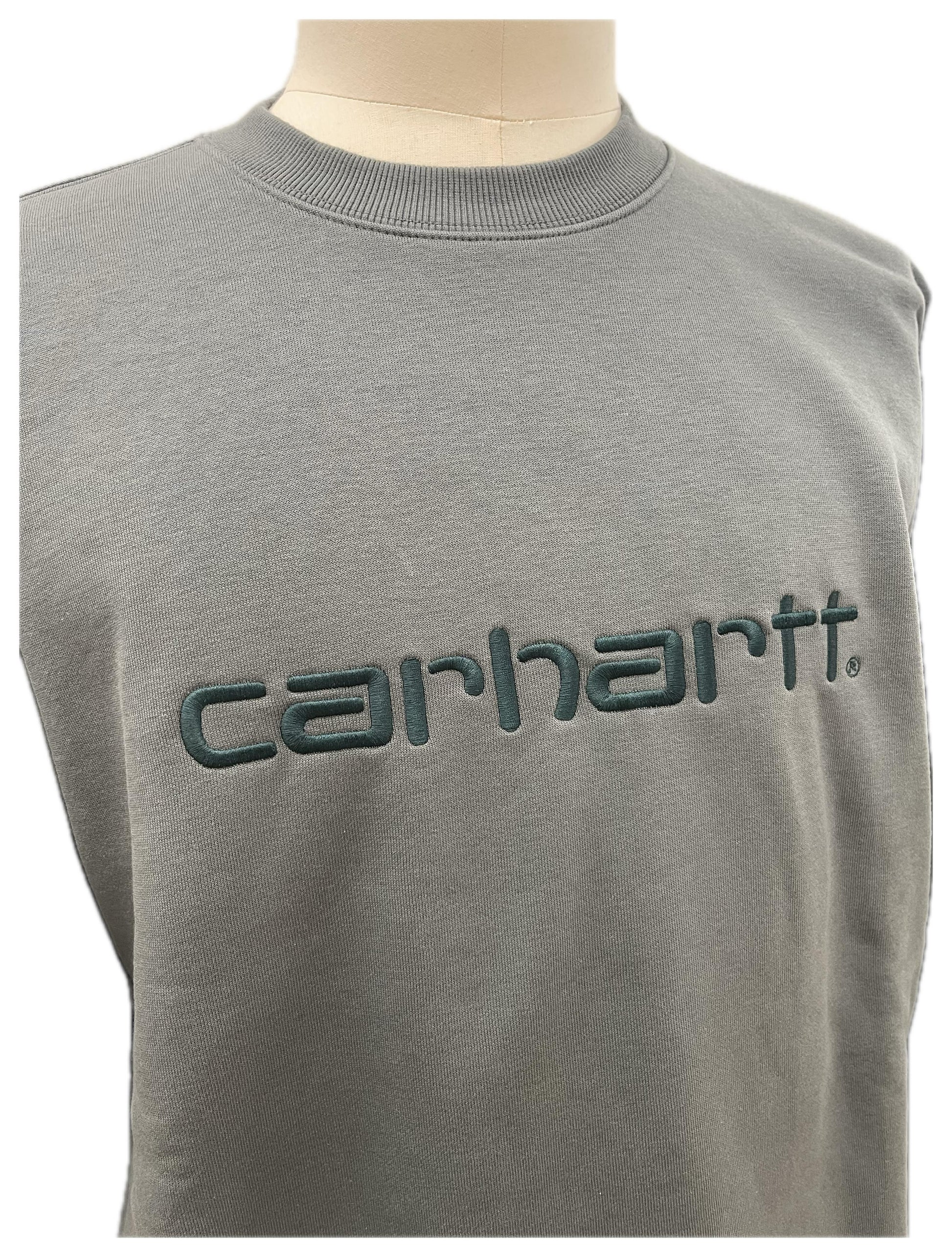 Girocollo grigio con grande logo Carhartt ricamato sul petto. Linee pulite, fit comodo e finiture robuste: perfetta per l’uso quotidiano in chiave workwear.