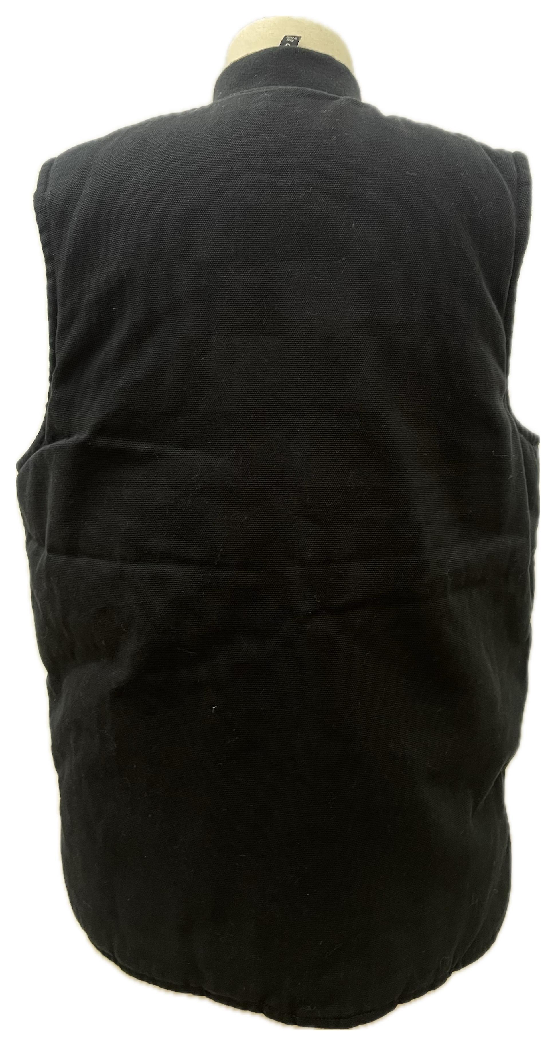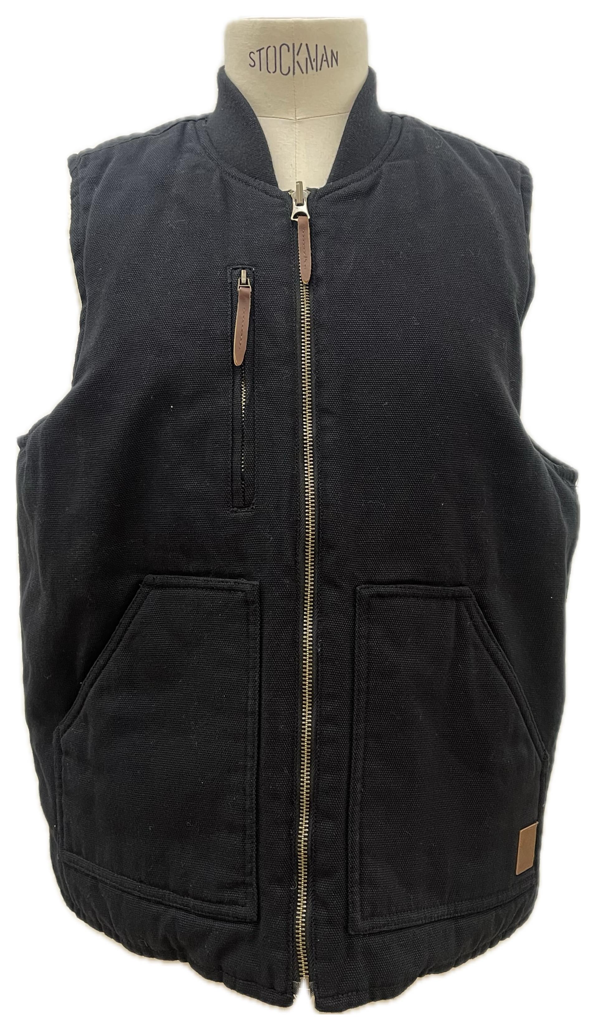Gilet in canvas nero con chiusura full-zip e grandi tasche frontali. Robusto ma comodo, perfetto per il layering su felpe e camicie durante la mezza stagione.