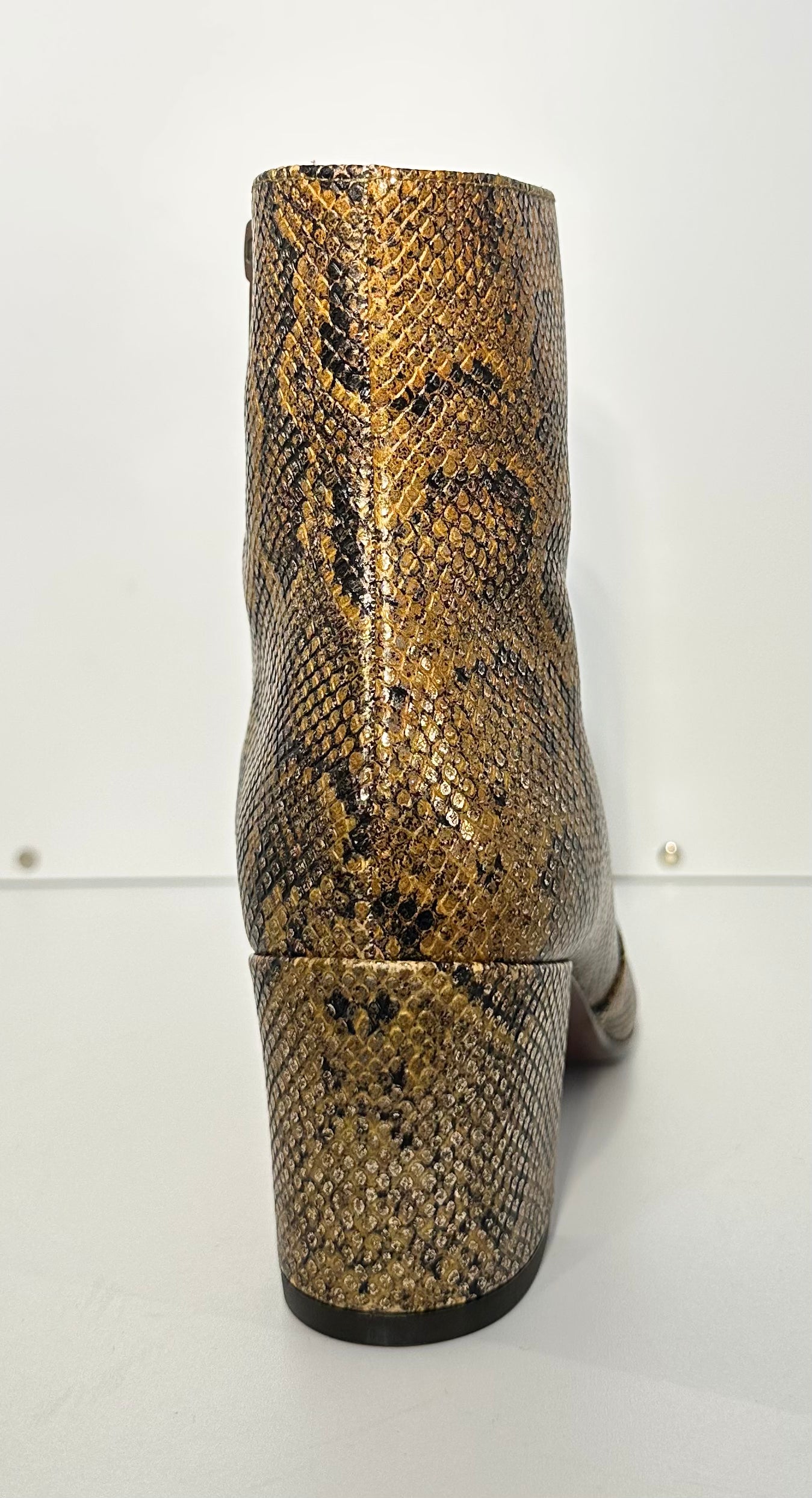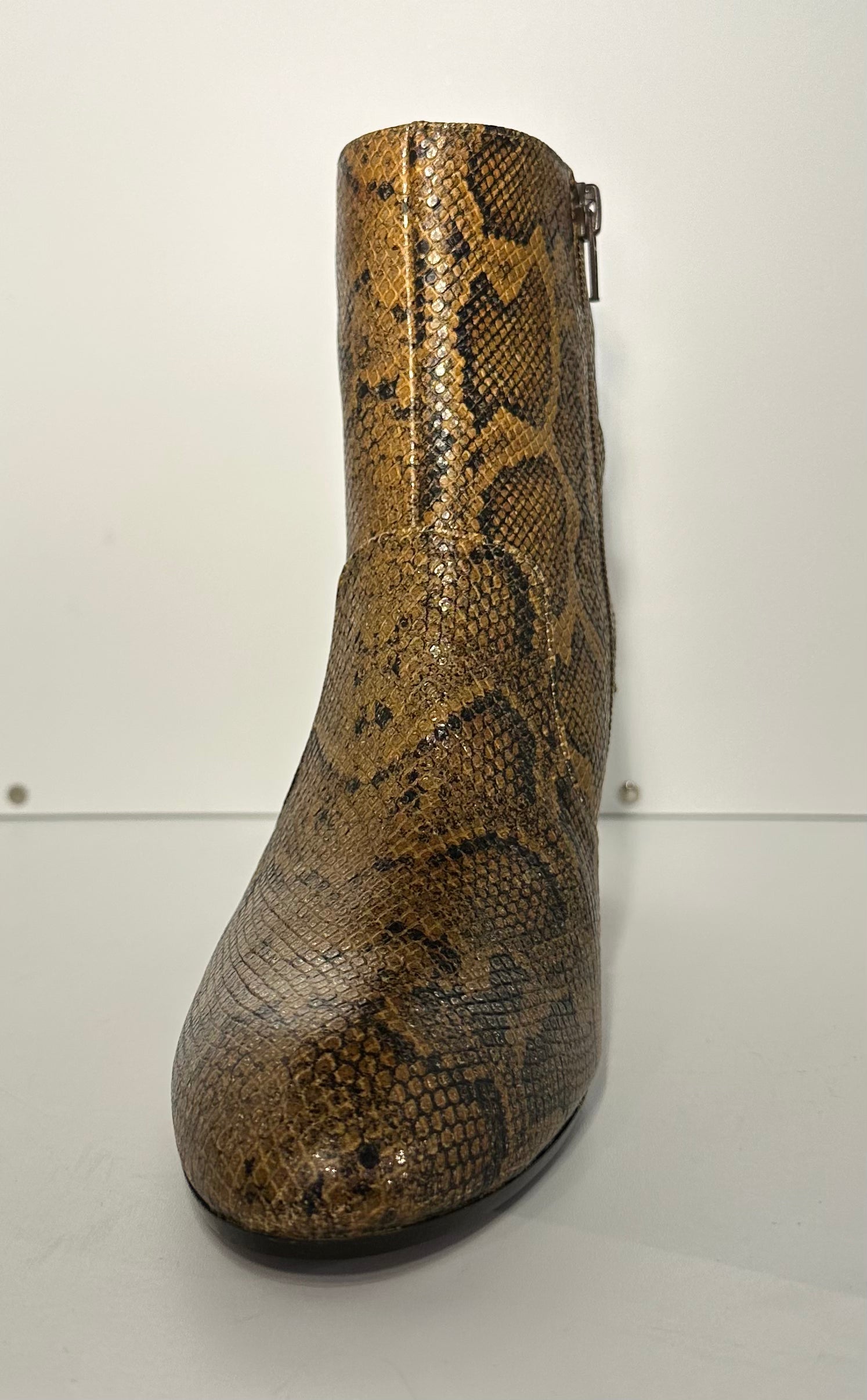 Tacco a Blocco Stabile: Il tacco di media altezza, anch’esso interamente rivestito in pelle stampa pitone, offre una base d'appoggio solida e confortevole, ideale per affrontare con sicurezza le sfide quotidiane in città.