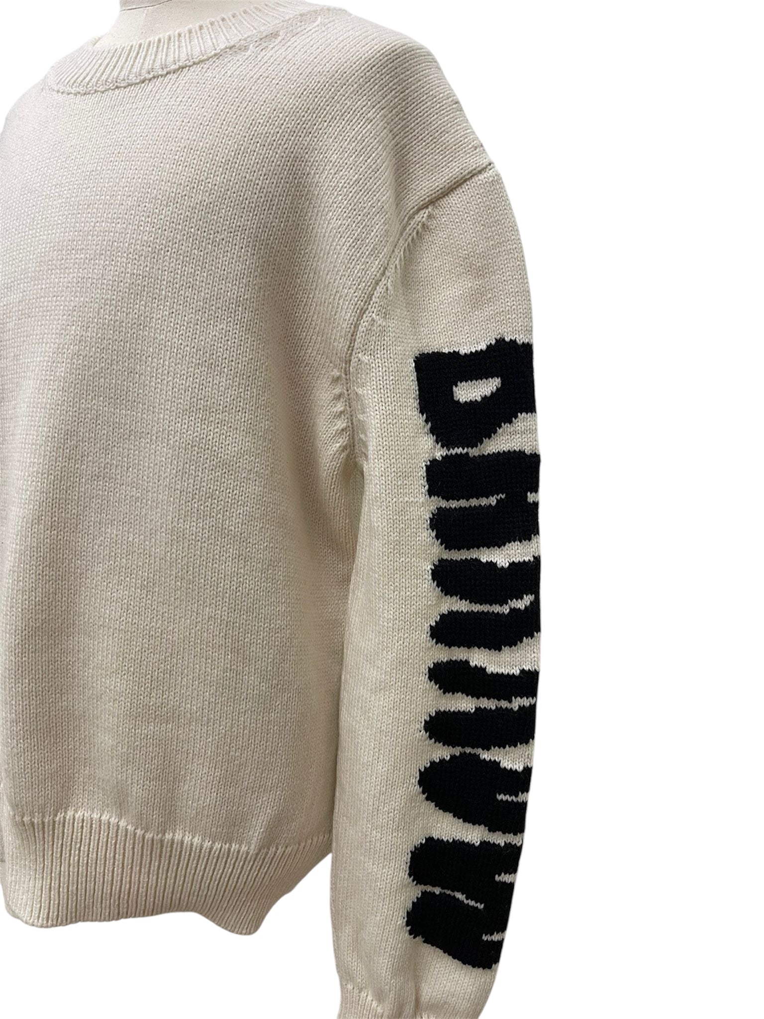 Maglione girocollo in maglia di cotone con fit morbido e design iconico Drew House. Caratterizzato da logo lettering sulle maniche e maxi Smiley sul retro, è un capo distintivo e versatile.
