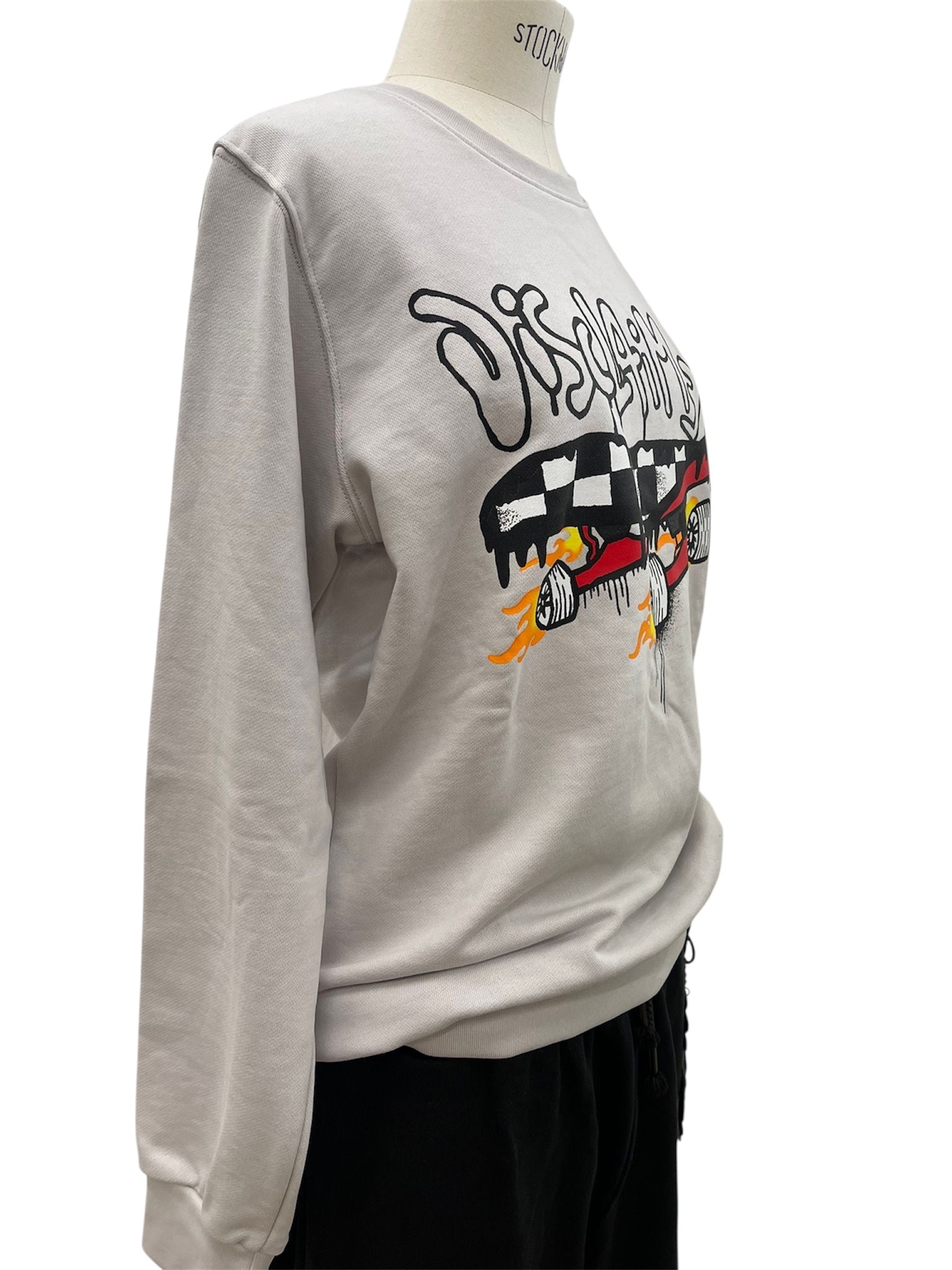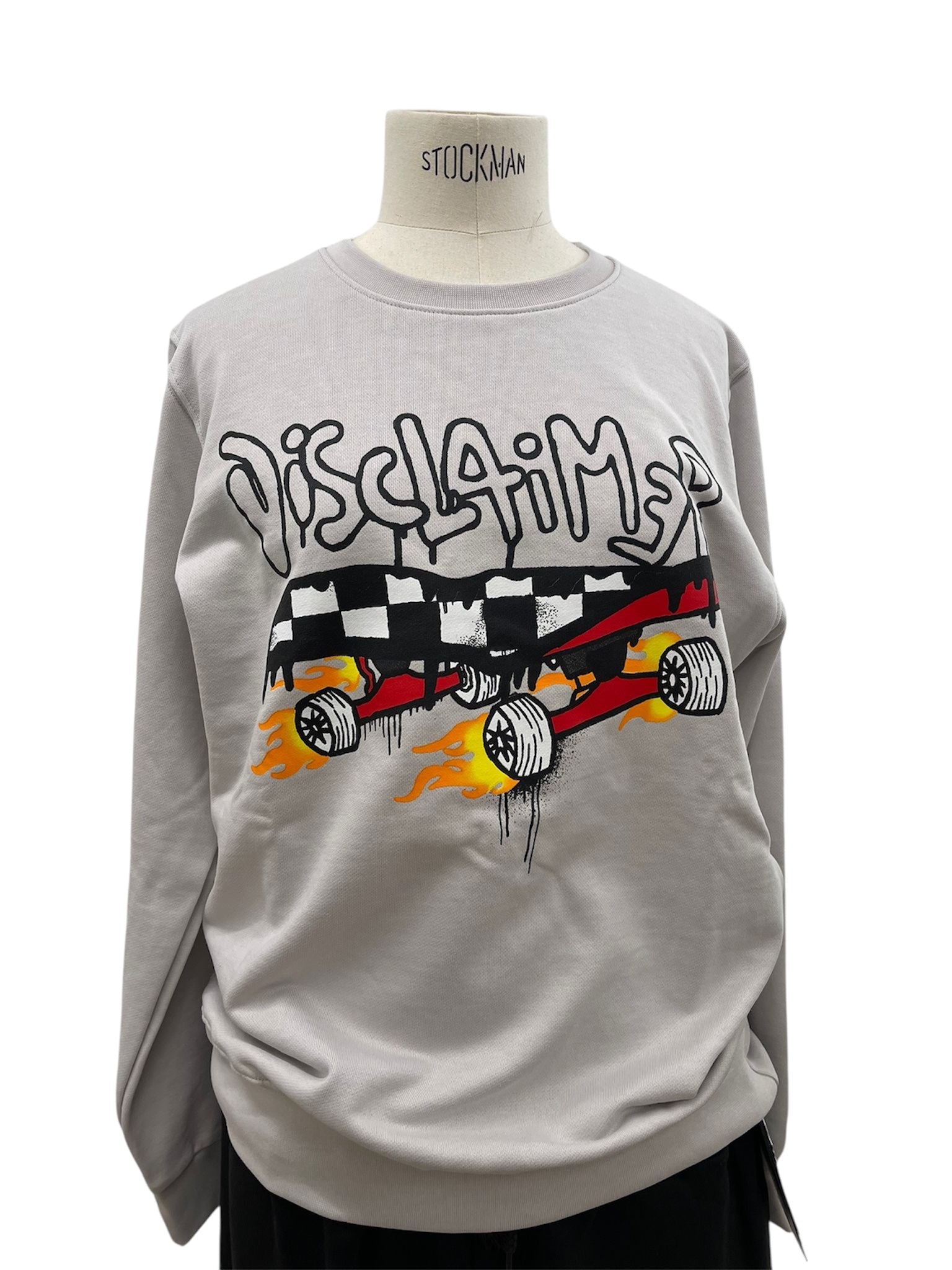Un capo streetwear dallo stile deciso e dinamico: questa felpa grigia firmata Disclaimer si distingue per la stampa frontale dal forte impatto visivo.