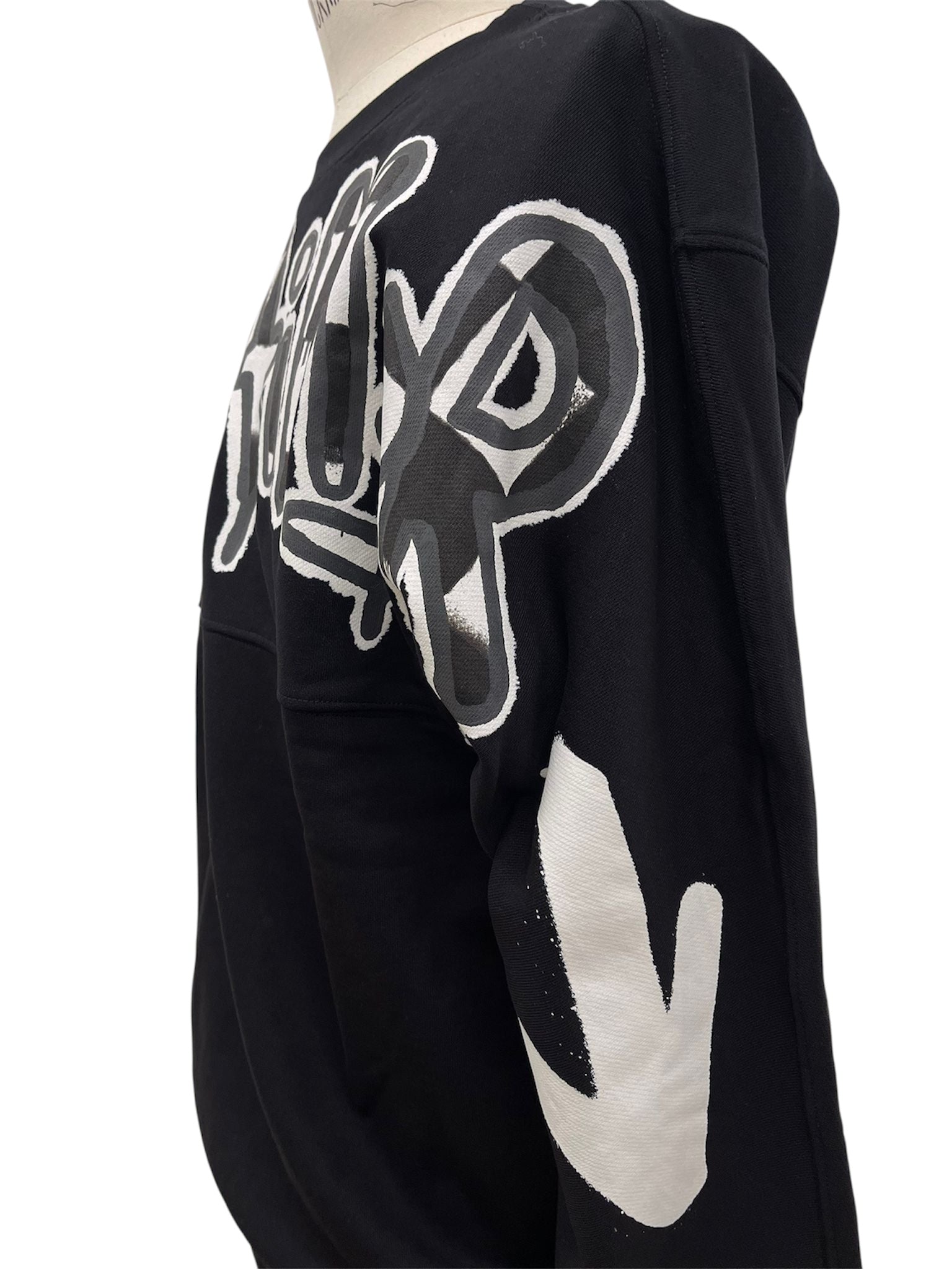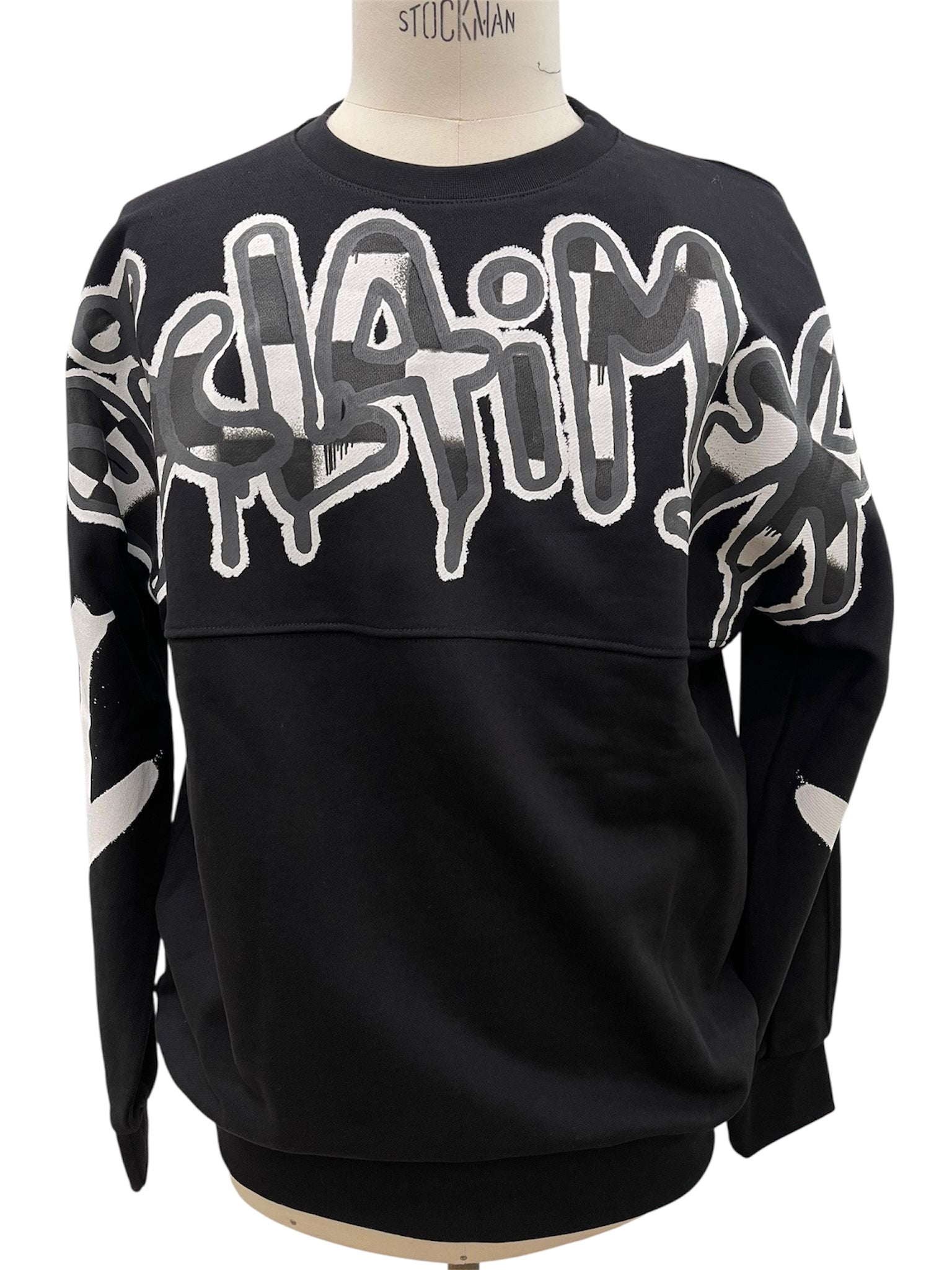 Una felpa streetwear di forte impatto, caratterizzata da un maxi logo Disclaimer effetto graffiti che attraversa petto e maniche. Un capo versatile che unisce comfort e stile urbano.