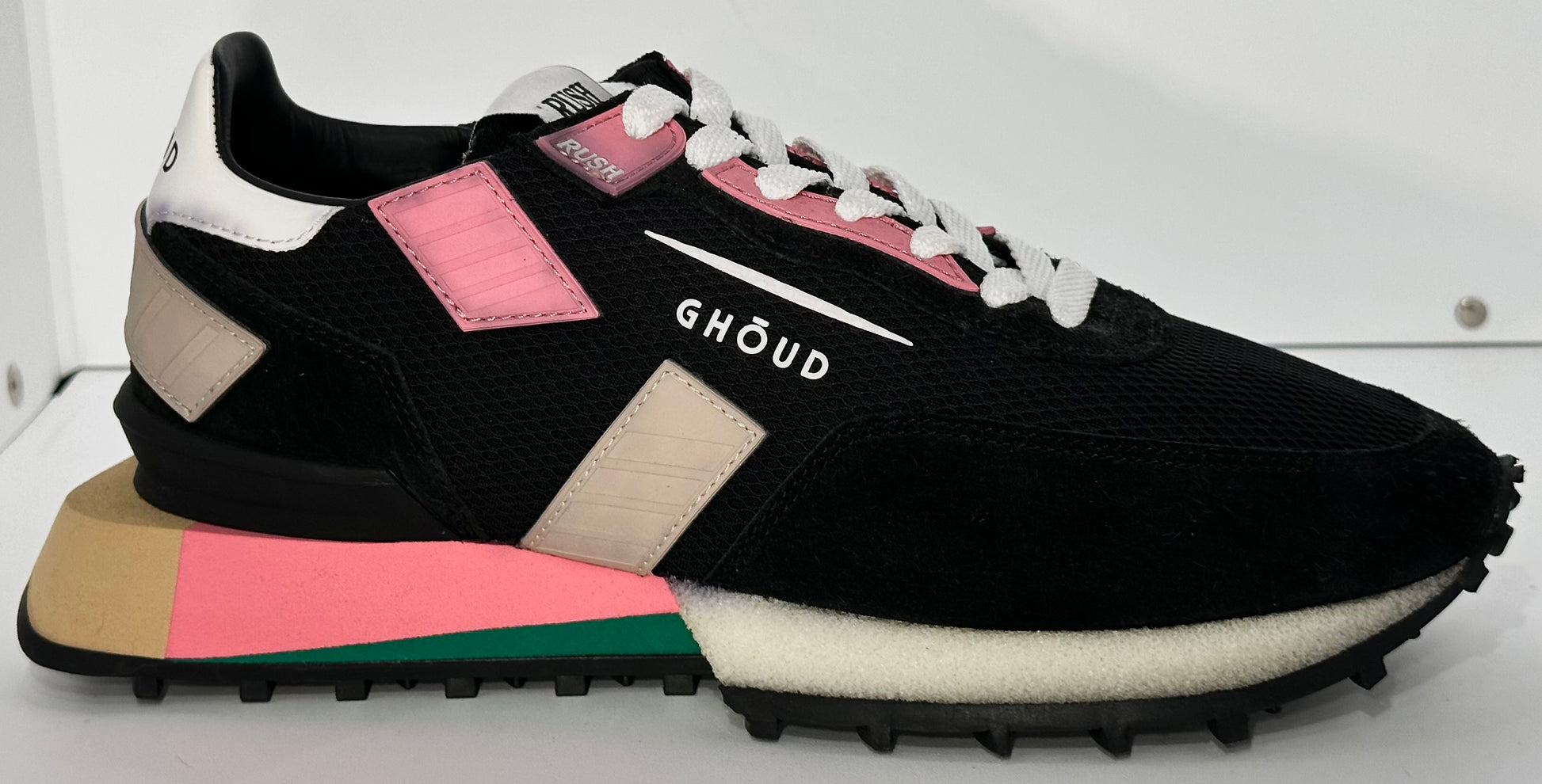 Logo GHŌUD stampato lateralmente e inciso sulla suola