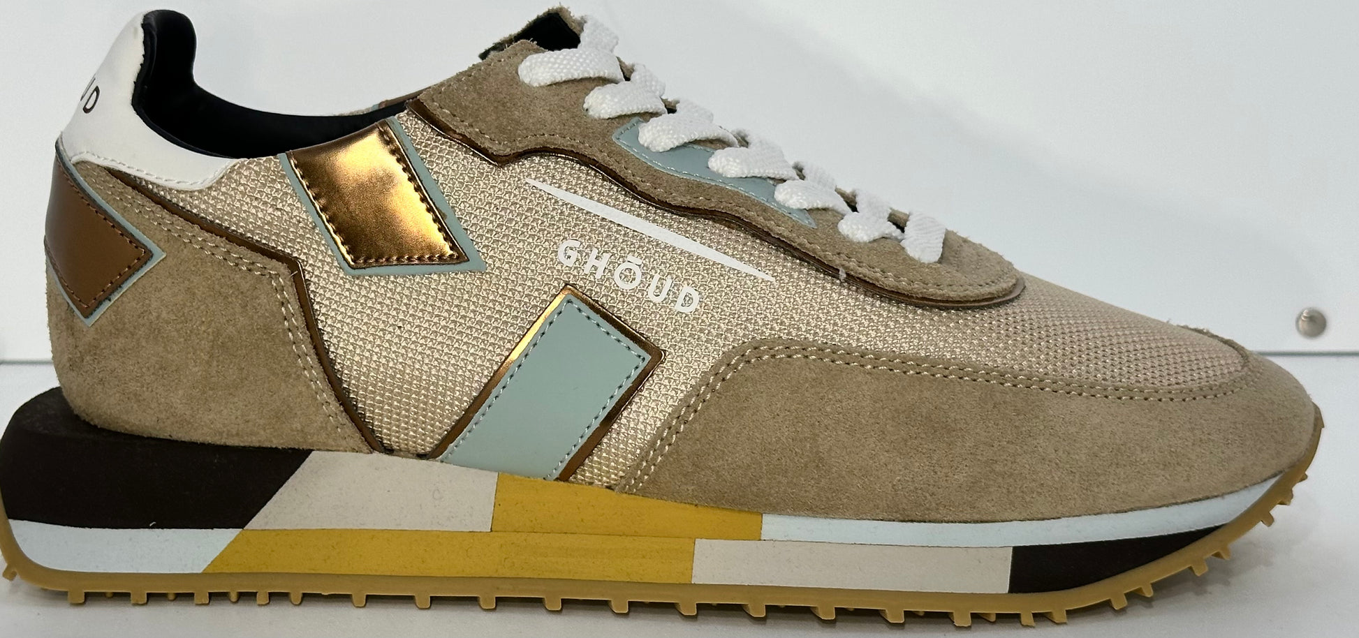 La suola in gomma color crema offre leggerezza e comfort, mentre i dettagli discreti come il logo GHŌUD impresso lateralmente e sulla suola esprimono la qualità e l’identità del marchio. Una sneaker versatile e senza tempo, perfetta per chi ama lo stile contemporaneo e la cura dei dettagli.