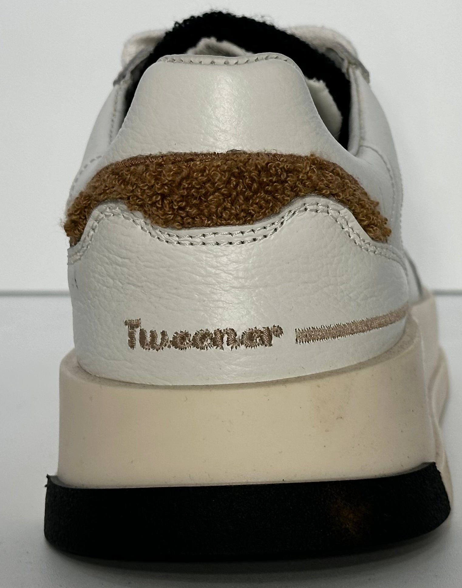 Il dettaglio in tessuto bouclé sul tallone aggiunge un tocco distintivo, mentre la suola in gomma color crema assicura comfort e stabilità durante tutta la giornata. Perfetta per completare look casual-chic o urban, questa sneaker unisce artigianalità italiana e design moderno.