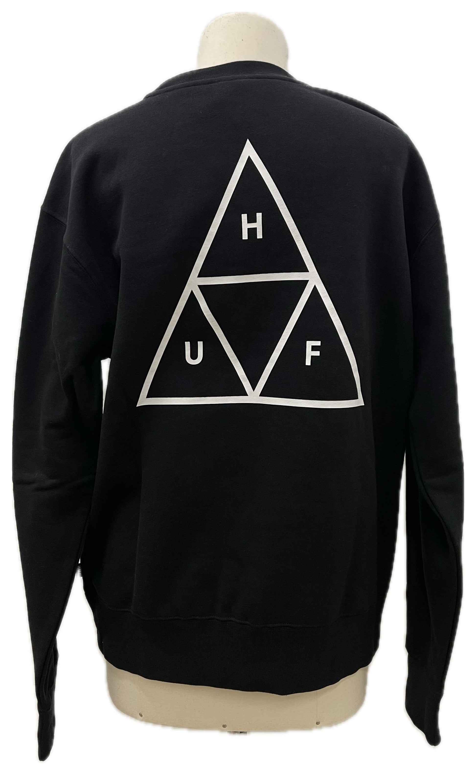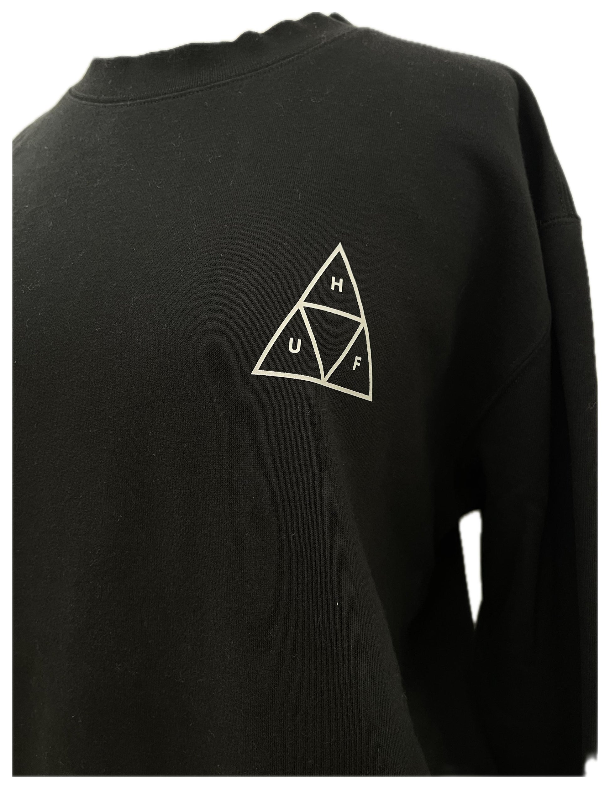 Felpa girocollo nera con mini Triple Triangle sul petto e maxi logo stampato sul retro. Morbida, pulita e iconica perfetta per lo streetwear quotidiano.