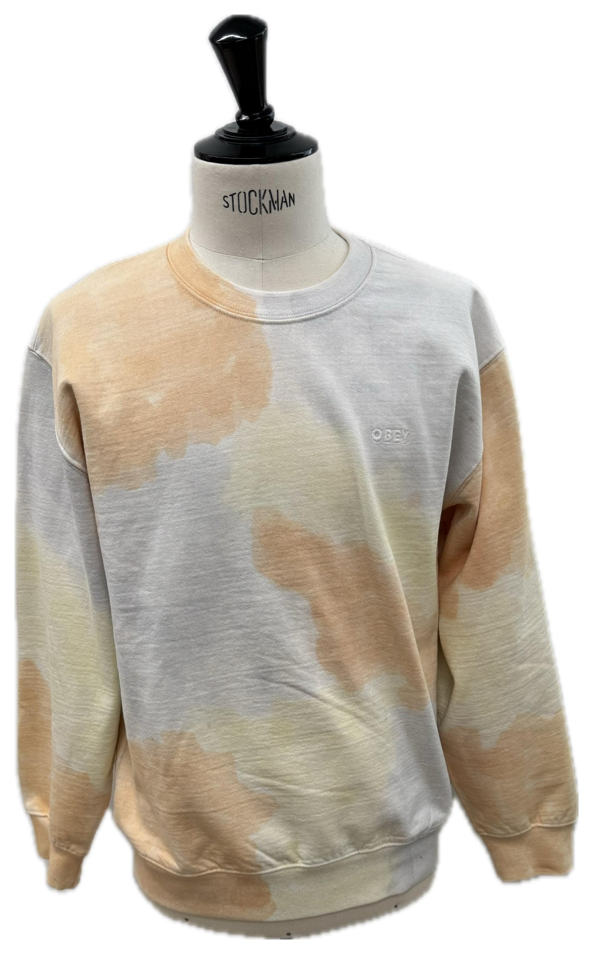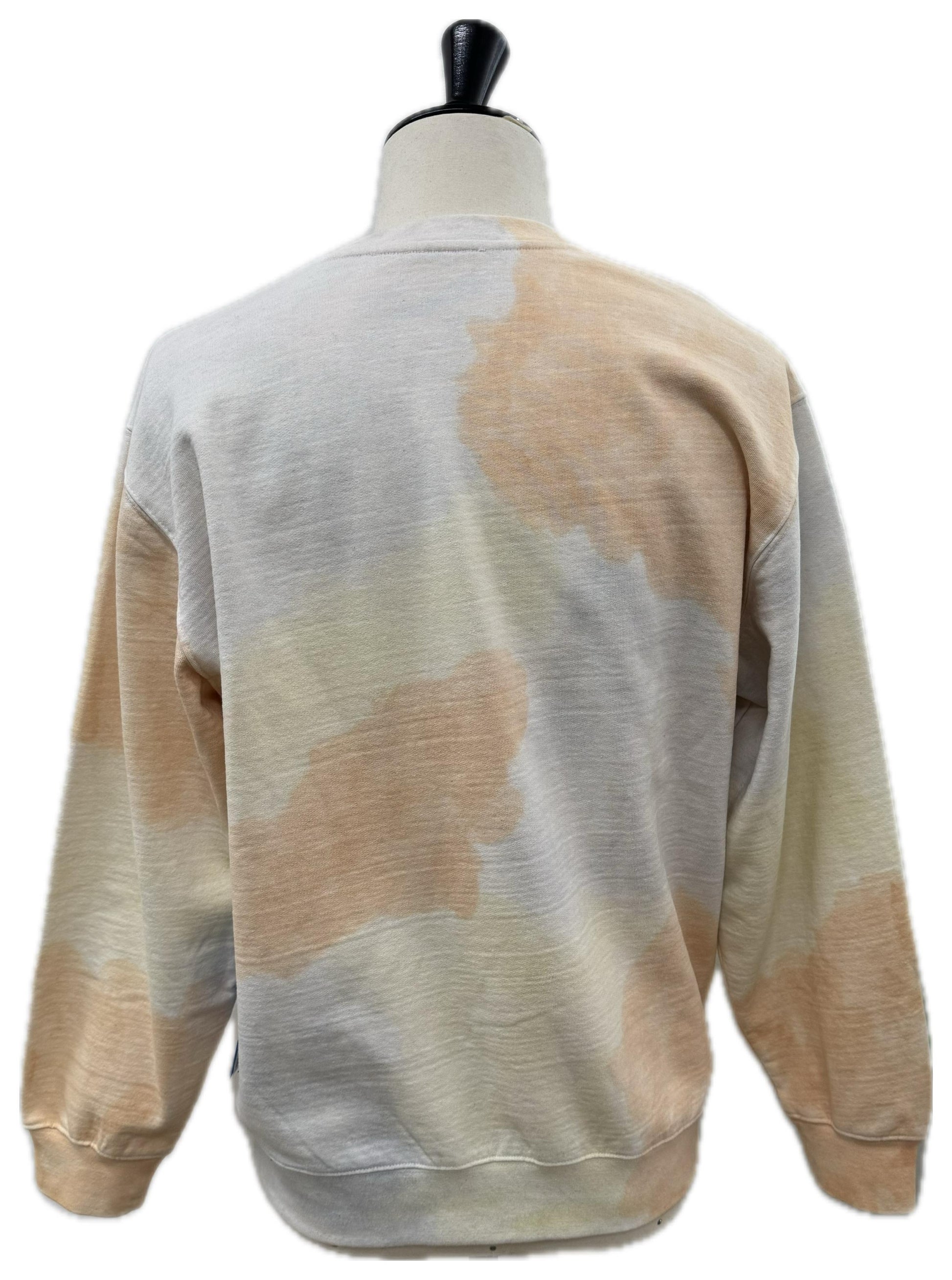Felpa girocollo con fantasia astratta “pastel camo” nei toni sabbia/crema/grigio. Vestibilità unisex regular, morbida e versatile: perfetta per lo streetwear quotidiano con denim chiaro, bianco o cargo.