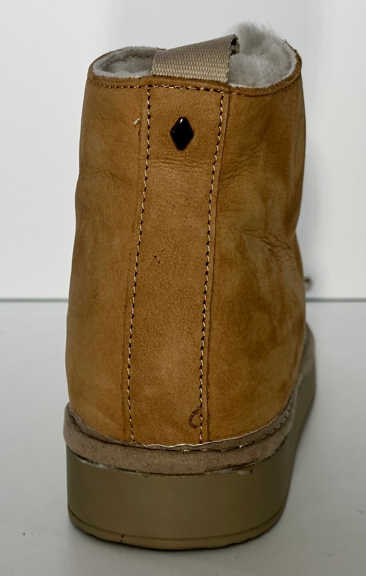 Un ankle boot dallo stile casual e raffinato, realizzato in morbido nabuk color camel con una fodera in shearling che assicura comfort e calore anche nelle giornate più fredde.