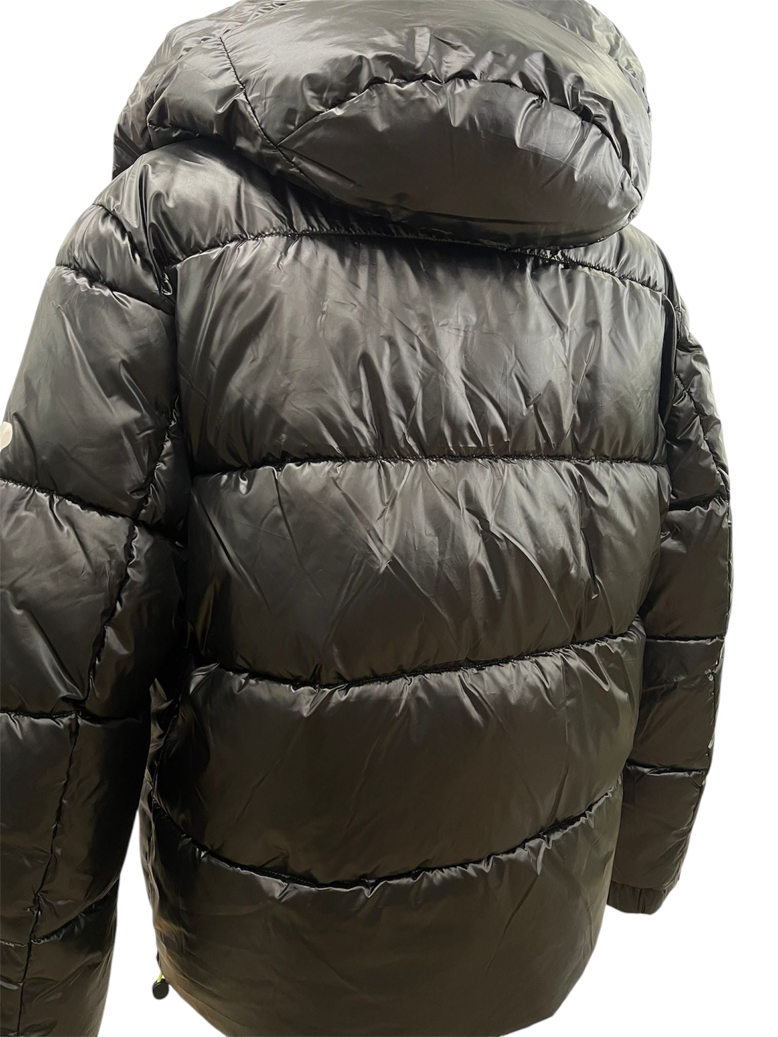 Disclaimer Piumino nero con dettagli fluo