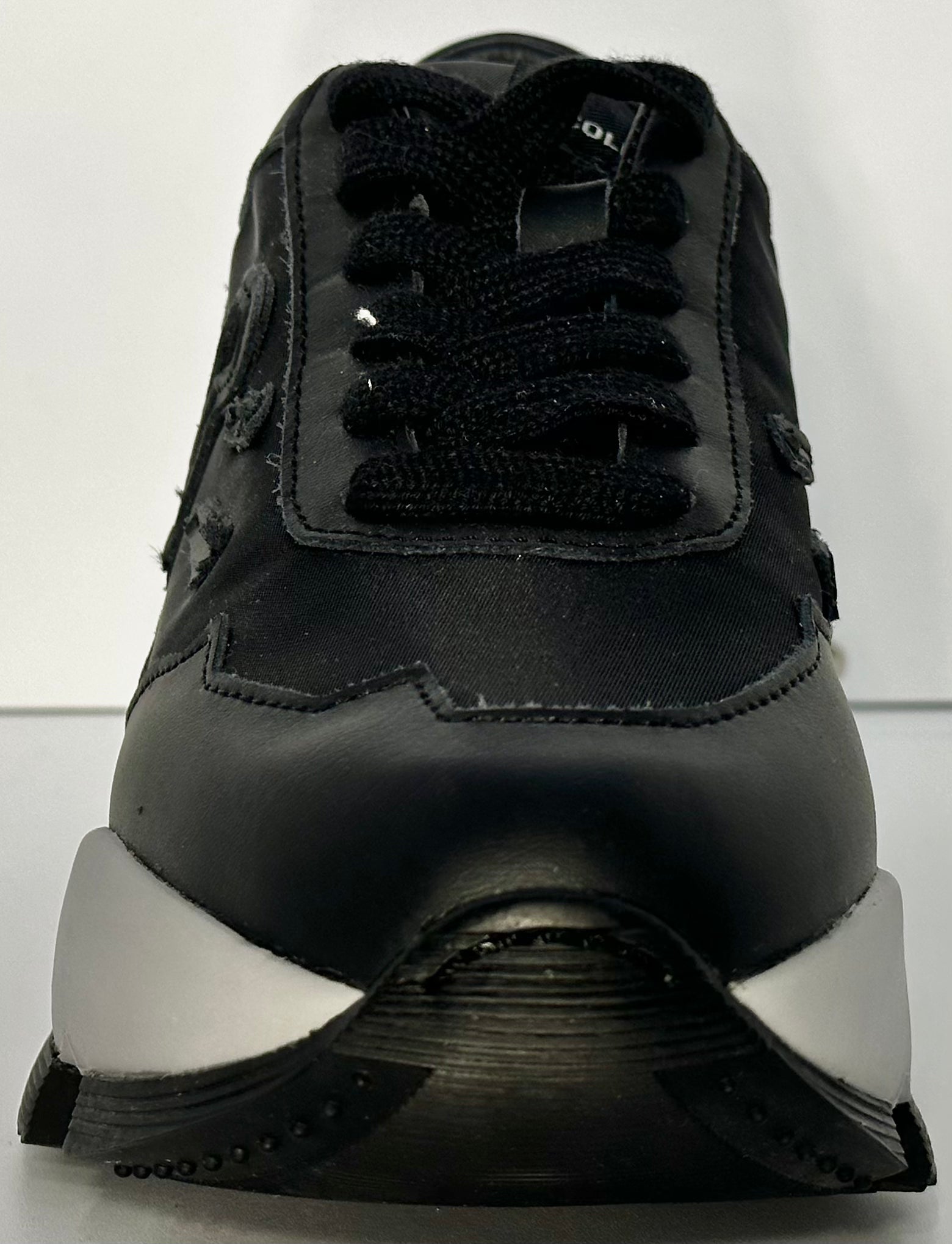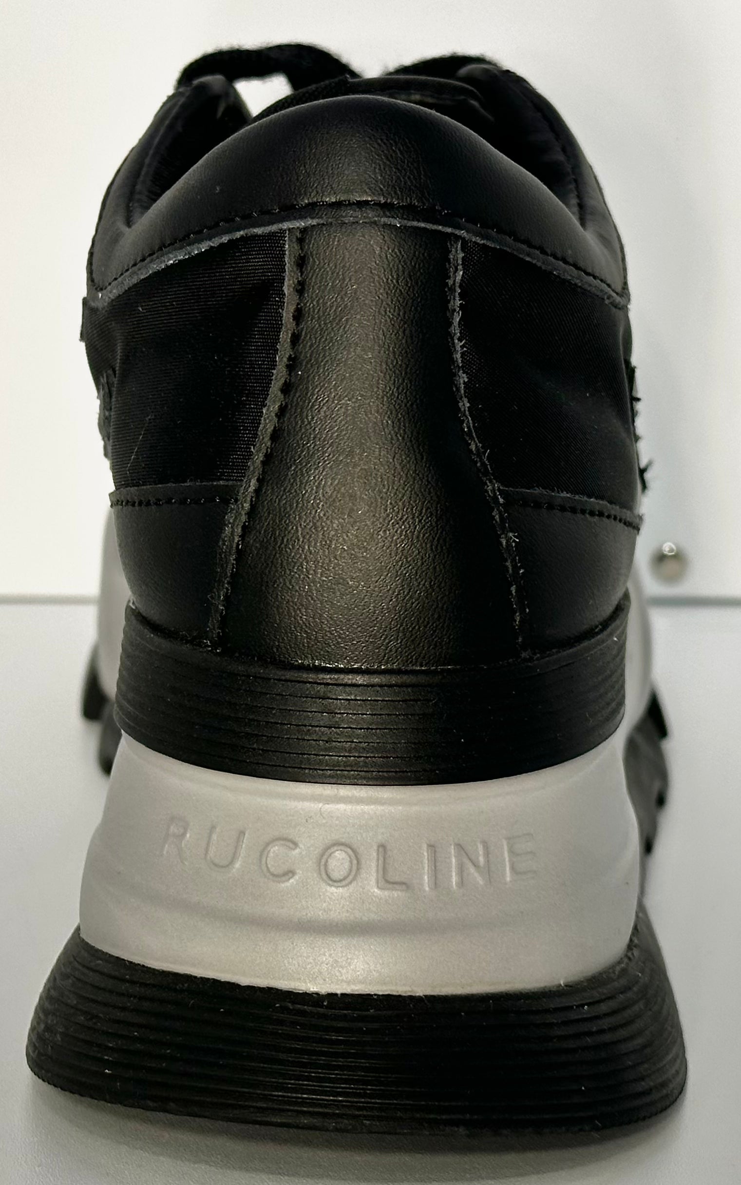 Scopri l'ultima evoluzione dello stile Rucoline con il modello Aki 300 Soft Bomber. Questa sneaker unisce la silhouette audace e chunky della linea Aki con una finitura total black interrotta solo dal contrasto deciso della suola bianca.