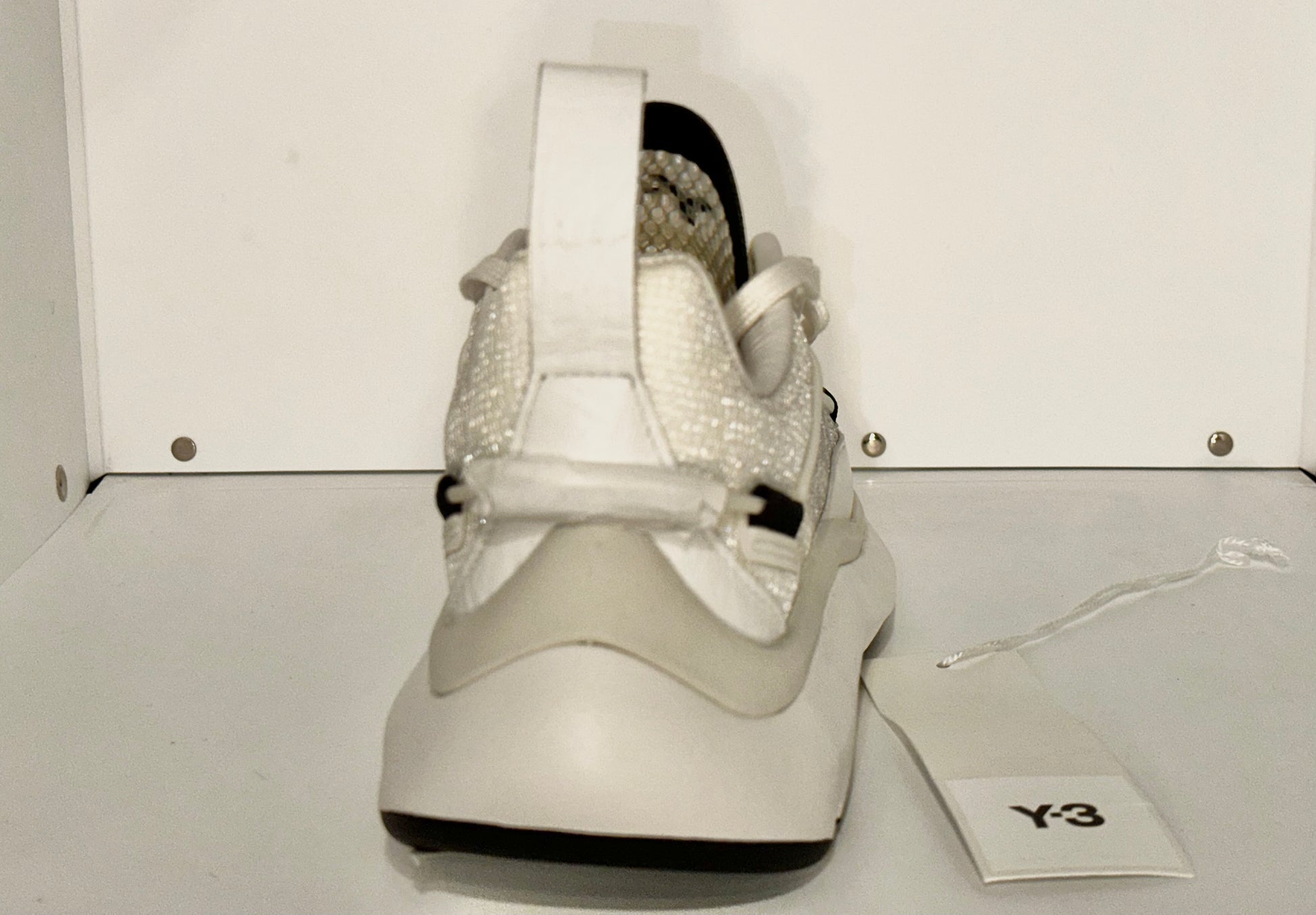 La sneaker presenta dettagli in corda elastica che percorrono lateralmente la tomaia, aggiungendo un tocco sportivo e futurista. La suola sagomata in EVA garantisce ammortizzazione e stabilità a ogni passo, mentre il logo Y-3 firma con discrezione la linguetta e la soletta interna.